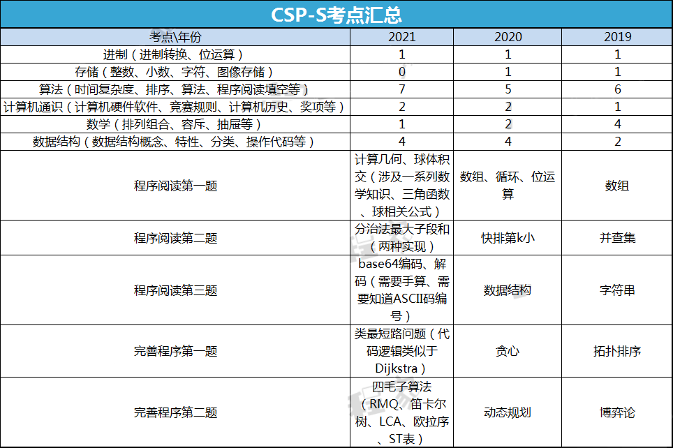 其次、了解近三年CSP-J/S常见的高频考点,进行有针对性备考。